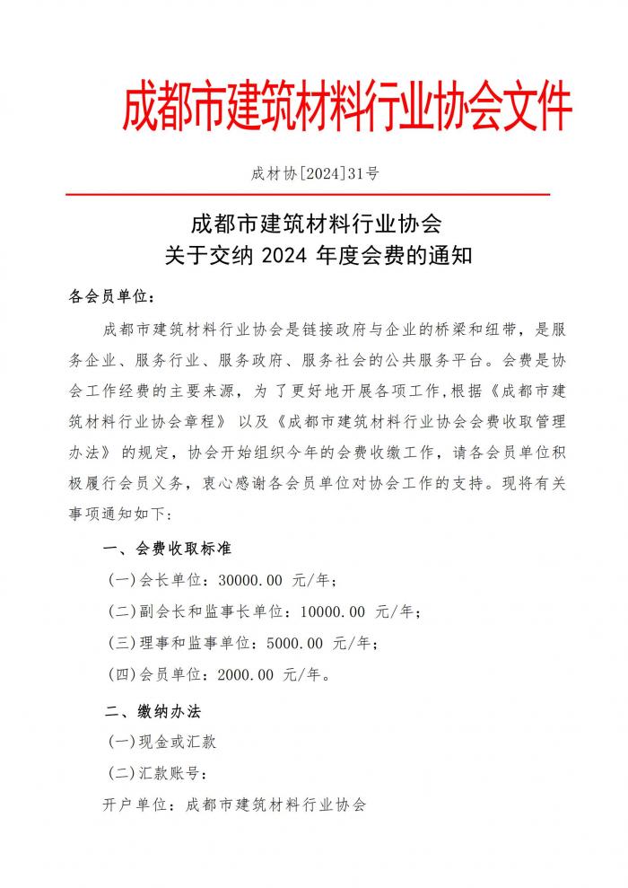 成都市建筑材料行业协会 关于交纳 2024 年度会费的通知