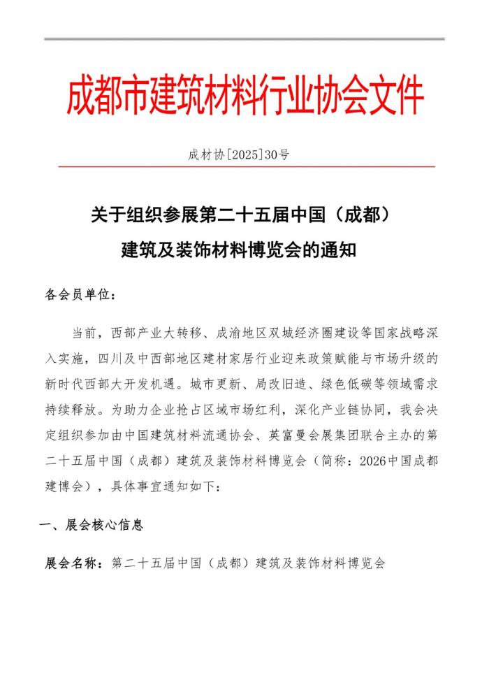 协会关于组织参展第二十五届中国(成都) 建筑及装饰材料博览会的通知